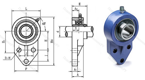Подшипниковый узел UCFB209 представляет одну из разновидностей подшипниковых узлов в сборе. Состоит из корпуса с кронштейном, имеющим форму равнобедренного треугольника, в котором имеется три отверстия под установочные болты, и встраиваемого подшипника различных типов в варианте исполнения Y.